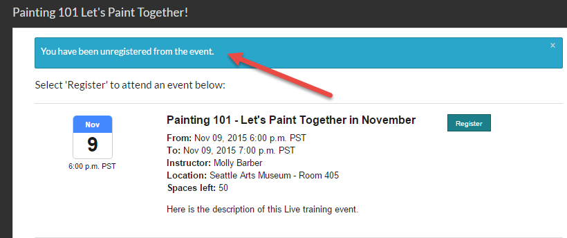 - The event will be removed from the Training Domain’s Calendar ([academy]. [yourcompany].com/calendar).