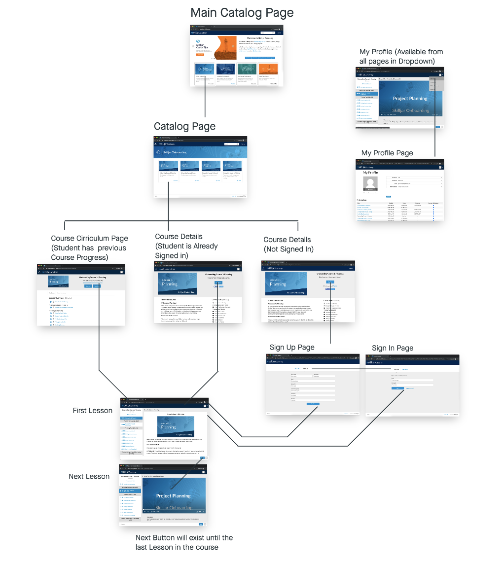 Site Wide Elements / Sign In / Sign Up Pages / Profile Page / Catalog Pages / Course Pages